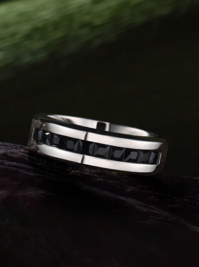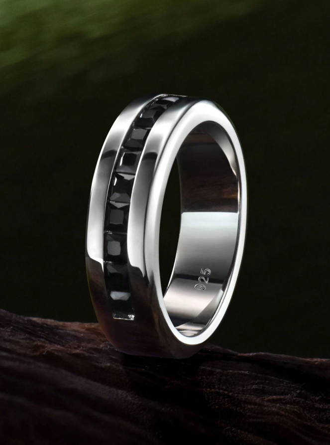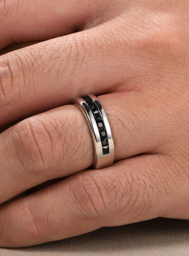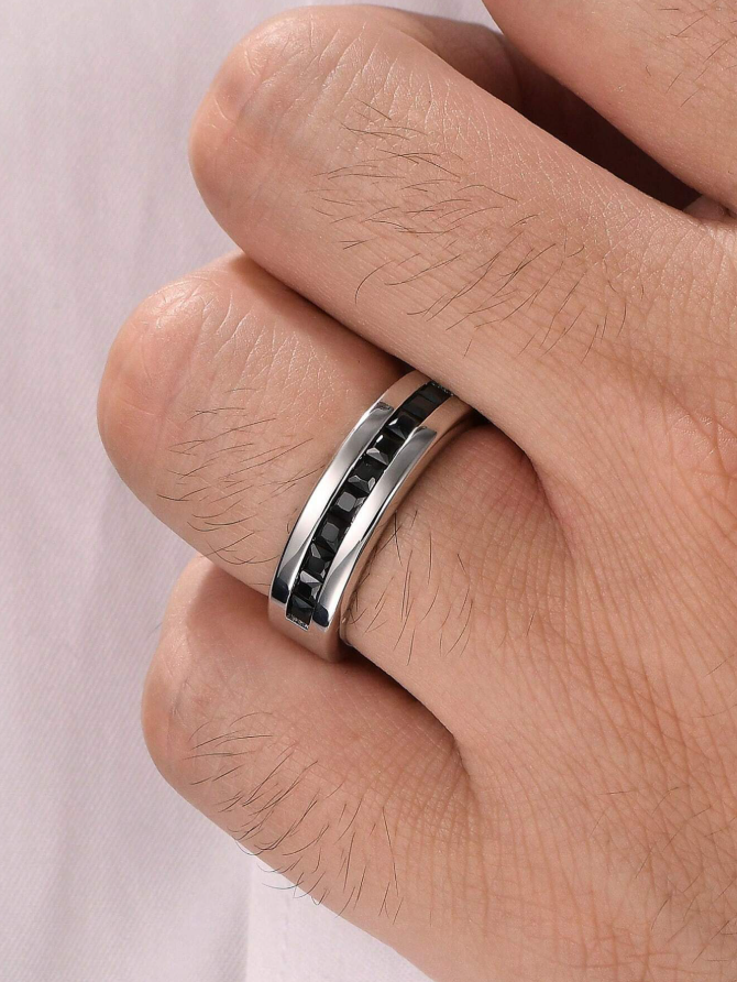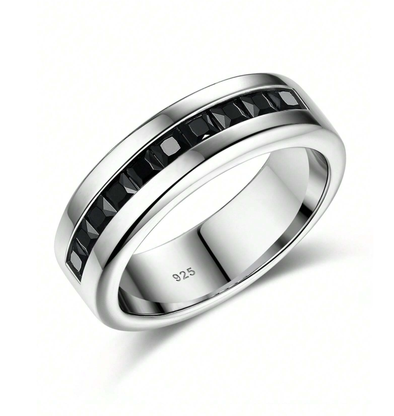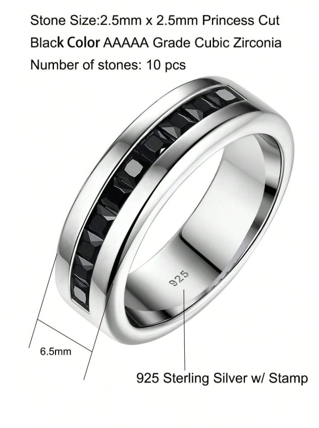 925 Sterling Silver Men Wedding Ring 1Ct 10 Large Princess Cut 5A Black Cubic Zirconia Wedding Ring