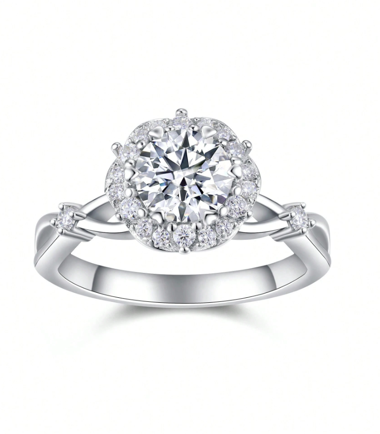 Floral Halo Design 1ct Moissanite Ring
