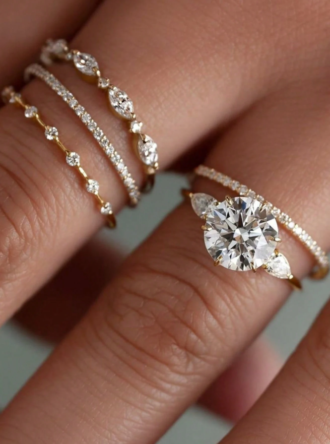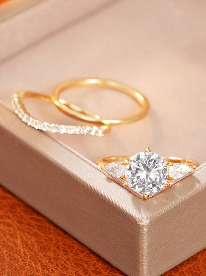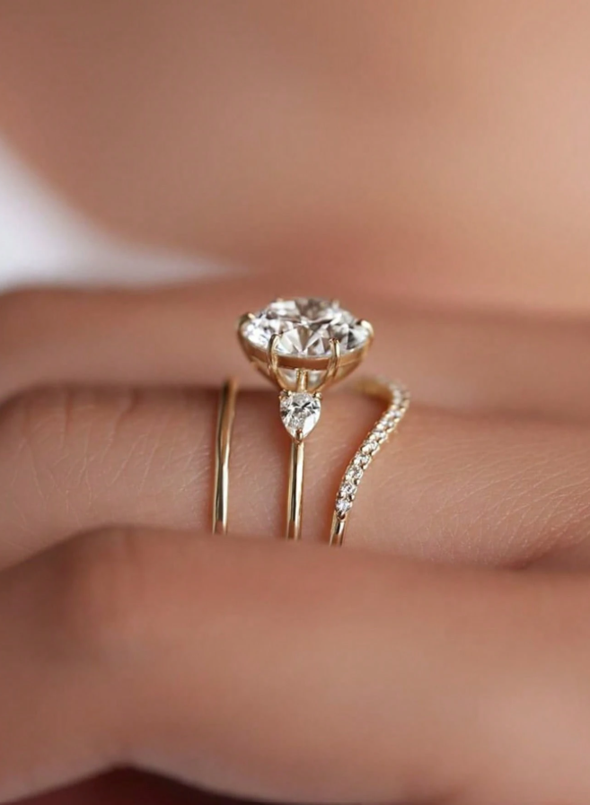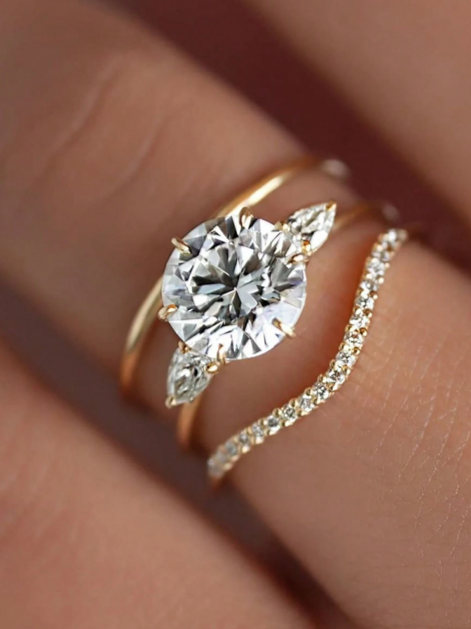 Geometric Round Diamond 3-piece Wedding Set