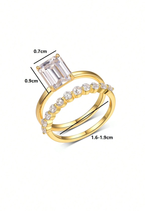 Rectangle Moissanite Ring Set
