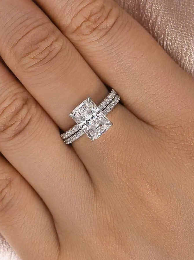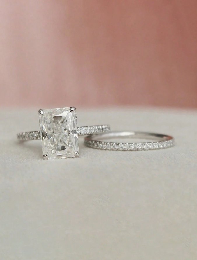Single Row & Rectangular Wedding Ring Set