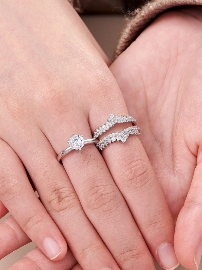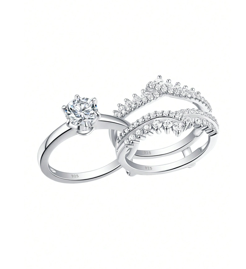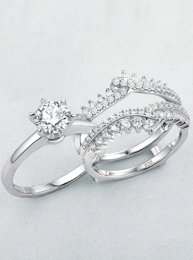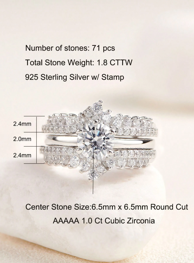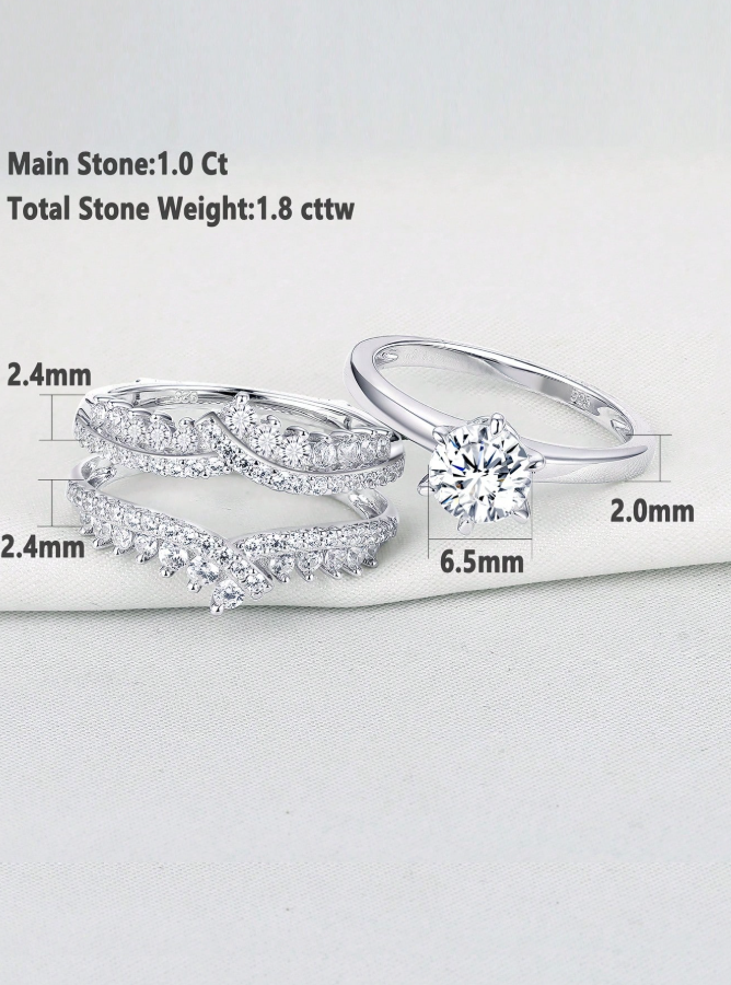 Solitaire 6.5*6.5mm 1.0 Carat Round Cut Dazzling AAAAA Cubic Zirconia Wedding Ring Set