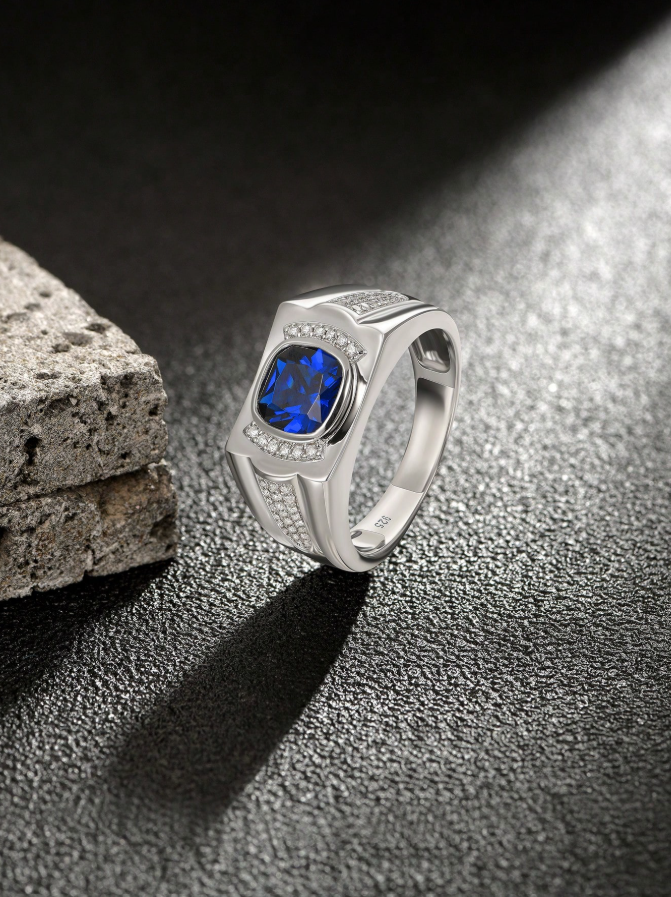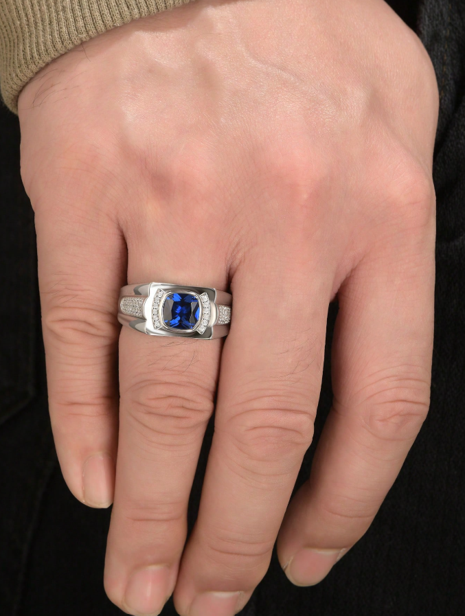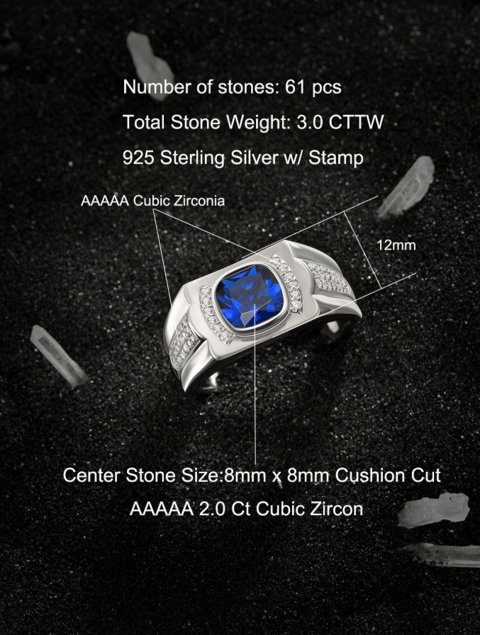 Solitaire 8*8mm 2.0 Carat Cushion Cut Dazzling Blue Synthetic Spinel Vintage Eternity Wedding Ring