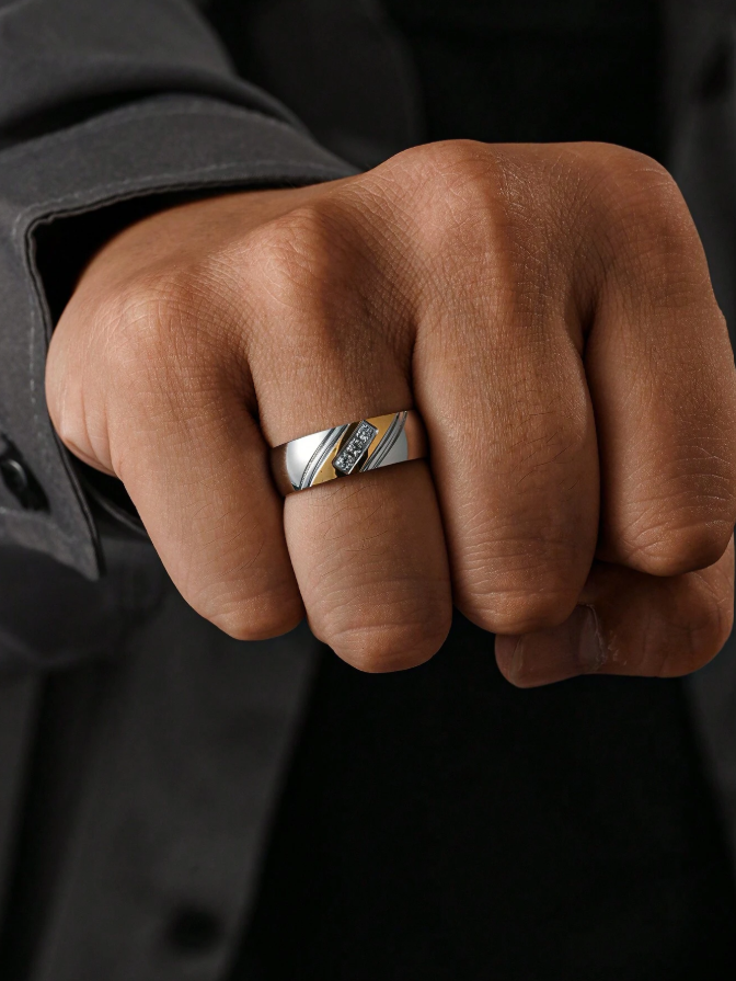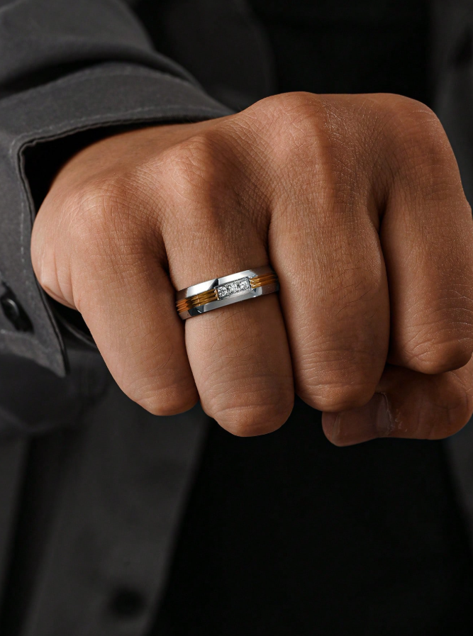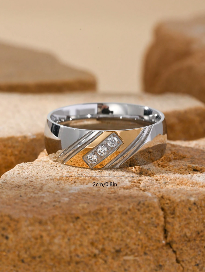 Stainless Steel 18K Gold Plated Inlaid Cubic Zirconia Wedding Ring
