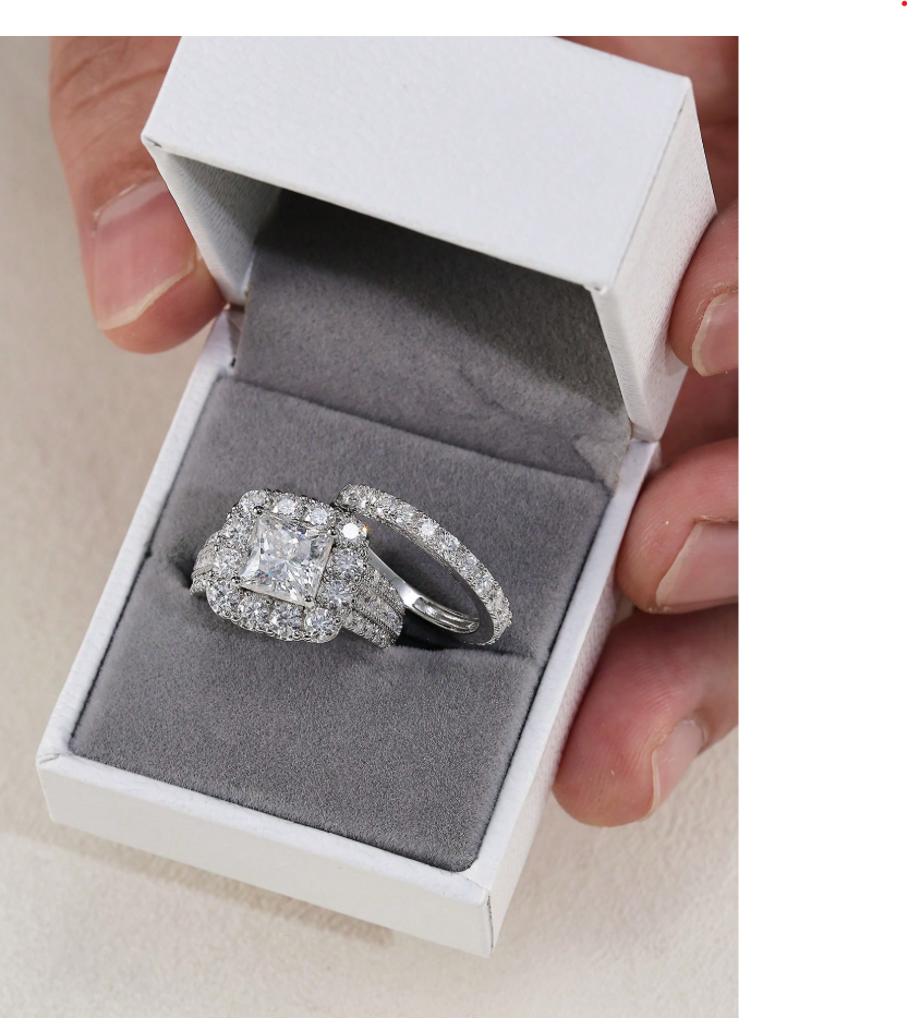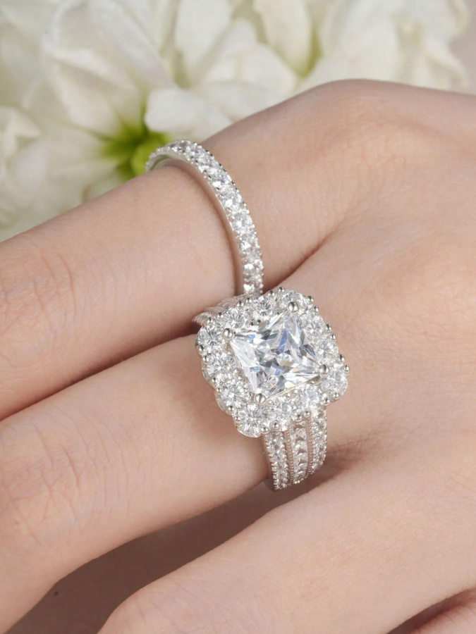 Vintage Style Laboratory-Created 7.5*7.5mm 2.5 Carat Princess Cut Wedding Set